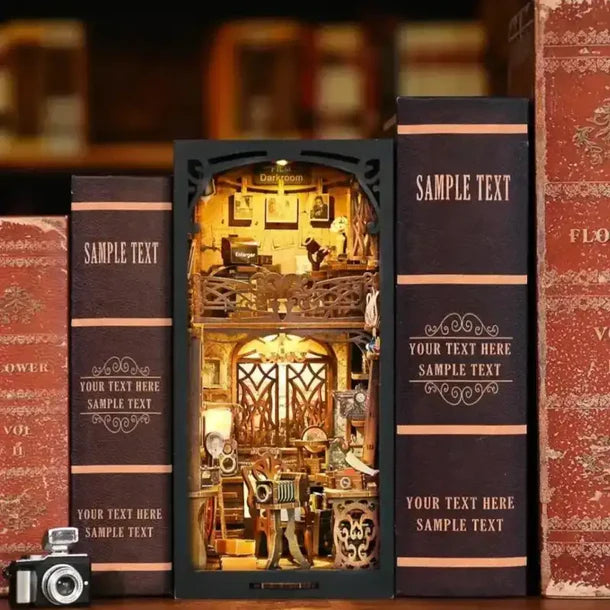Ideal para fotógrafos, creativos y amantes del estilo retro. Un book nook original que aporta personalidad y carácter a cualquier estantería.