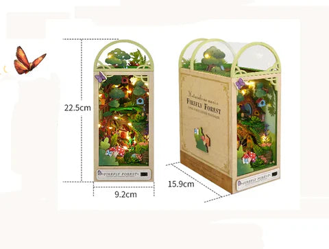 Firefly Forest recrea un bosque nocturno lleno de magia, donde pequeñas luces simulan luciérnagas y crean una escena misteriosa y encantadora entre tus libros.